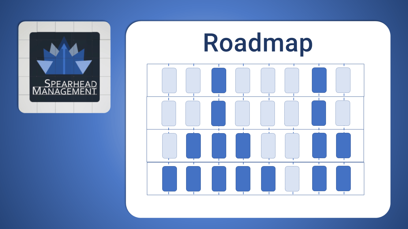 The Spearhead Roadmap is a dynamic overview of goals, challenges and building blocks towards the Spearhead enabled organization. This roadmap will be regularly reviewed and adjusted by the Spearhead Champions of Change.
